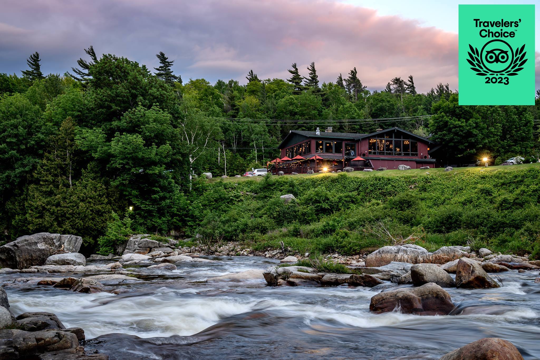 The lodge has a 21-room motel, a restaurant called the Hungry Trout Restaurant, and RF McDougall’s Pub. It offers a bundled experience with places to stay, food to eat, and access to the river for fishing.