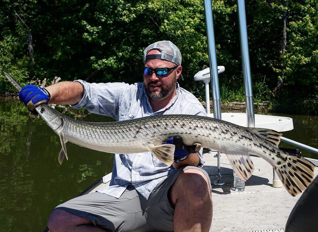 41:53 – He talks about Thad Robison who has a show on Discovery called “Fish or Die”. He fished with Craig’s crew two years ago. He also says that the longnose gars are aggressive. Their scales and sheer power are more dangerous than their teeth. So they have their clients wear gloves when handling gar.