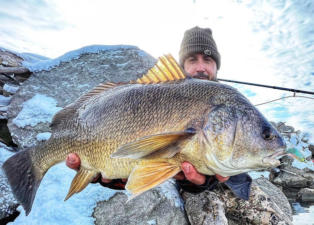 06:00 – Dave found out that a stonefly nymph pattern works great for Spotfin Croakers.